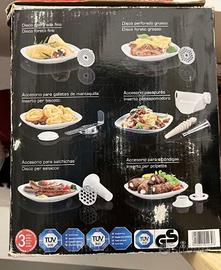 • Tritacarne, Con inserto passapomodoro - ideale per tritare carne, insaccare salsicce. - Adatto anche per preparare biscotti - incl, sagoma in acciaio inossidabile* con 4 motivi diversi - funzione di inversione marcia