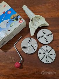 - provvisto di tre dischi in acciaio inox per tritare la verdura.