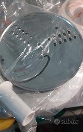 Tritatutto completo di lama, spremiagrumi, disco per affettare e grattugiare, frusta.