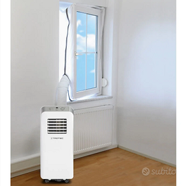 Guarnizione per l'uso di condizionatori d'aria mobili, utili a soffiare l'aria calda di scarico attraverso una finestra aperta o inclinata senza dover forare il muro.