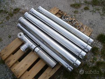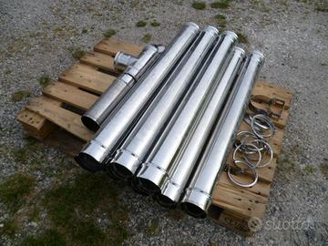 Vendo per inutilizzo, tubi e raccordi per camino in inox per stufa a legna o stufa a pellet. Usati pochissimo, "Come da foto" Dal diametro di cm 10. Comprendente, serie di 8 tubi, diametro cm. 10, lunghi 1 metro cadauno, completi di guarnizioni interne. tubo a croce con scarico condensa con guarnizioni interne, Tappo scarico condensa, raccordo scarico da 35 cm. 10 fascette blocca tubi. 1 supporto porta tubi. (come da foto". Vendo al prezzo Regalo di 200 euro. Eventuale trasporto, con furgone... Cortesemente solo contatti telefonici. Grazie. Telefono n° 3333227826. Roberto.