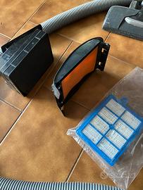 Tubo flessibile e rigido allungabile per aspirapolvere Electrolux, completo di spazzola e filtri usati ma puliti.