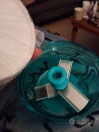 turbo Chef in plastica azzurro con tri lama in acciaio ottimo per tritate cipolle, carote,noci ecc....