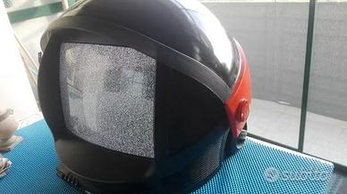 Raro televisore a forma di casco di astronauta perfettamente funzionante e senza rotture o graffi.completo con le sue ruote posteriori regolabili e telecomando FUNZIONANTE.