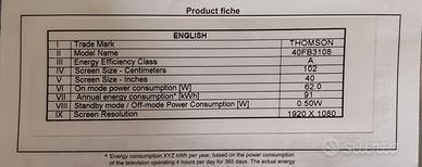 Vendo TV thomson Faccio presente che non 3 una Smart Tv
