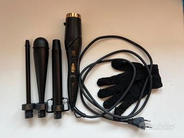 Styler per creare facilmente onde e ricci con la massima protezione per i capelli, grazie al rivestimento in ceramica e alla regolazione automatica della temperatura in funzione dell'accessorio montato sulla base.