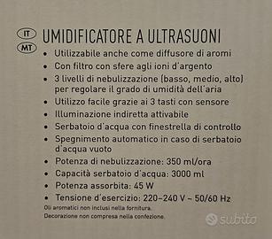 - 3 livelli di nebulizzazione (basso, medio, alto) per regolare il grado di umidità dell'aria