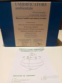 Umidificatore ambientale per ambienti riscaldati con incavo per essenza profumate/balsamiche usato pochissimo, completo di confezione originale e libretto.