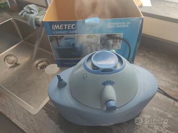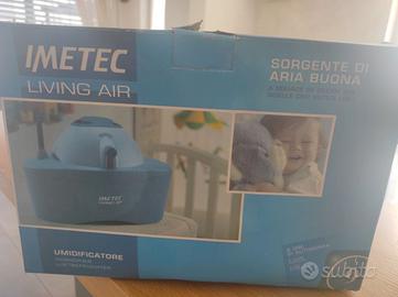 Umidificatore IMETEC LIVING AIR perfettamente funzionante, con regolazione del flusso di vapore sanificato, contenitore per essenze , astina galleggiante per il controllo dell'acqua rimanente. Capacità 9 ore. Confezione originale.