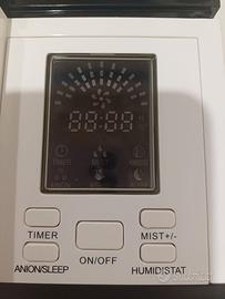 Umidificatore a ultrasuoni, molto silenzioso (max. 38 dB) e a bassissimo consumo energetico. Il Serbatoio da 4 lassicura una buona autonomia anche ai livelli massimi di erogazione del vapore,fino a 15 ore, con un’erogazione di 300 ml/h massimo, idonei ad umidificare localifino a 40 mq (anche se il produttore dichiara fino a 150 mq). Il vapore emesso è freddo e igienizzato da un filtro permanente in ceramica microporosa, che trattiene sia i minerali presenti nell’acqua, sia i microorganismi. È presente anche uno ionizzatore integrato per favorire la pulizia dell’aria nell’ambiente. Il livello di umidità desiderato si può impostare in un range che vada 40 a 95%, e un timer di attivazione da24 ore massimo permette di azionare l’umidificatore per un periodo di tempo limitato. Nuovo, MAI USATO.