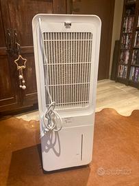 Portatile e dotato di ruotine e telecomando, questo ventilatore a colonna ha un capiente serbatoio per l’acqua o il ghiaccio (io ho usato le mattonelle per frigoriferi portatili, perché raffreddano molto più velocemente e più a lungo).