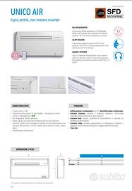 Vendo Climatizzatore Unico Olimpia Splendid, modello Air inverter 10 HP, in ottimo stato e funzionante, usato pochissimo (installato in seconda casa al mare). Non ha unità esterna, ideale da installare in abitazioni in centro storico. Possibile installazione sia a livello pavimento che in alto tipo split. Telecomando, funzioni freddo e caldo, deumidificzione, ventilatore, eco, benessere notturno. Caratteristiche tecniche nella 3 e 4 foto.