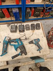 vendesi utensili a batteria marca newton. il kit comprende trapano avvitatore, scalpellatore, smerigliatrice angolare(flessibile), 2 caricabatterie e 2 batterie