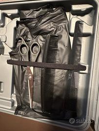 Valigetta completa di mantella, pettine, forbici, rasoio con vari adattarori. Praticamente mai usato.