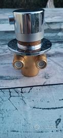 Valvola termostatica per box doccia multifunzione in ottone completa con manopola, ghiera con gradi entrambi cromati e filtri in ingresso acqua calda e fredda e dotata di arresto sicurezza a 38gradi sbloccabile