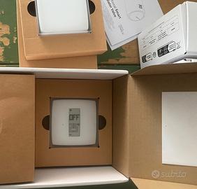 Kit Netatmo/Legrand composto da termostato intelligente, router WiFi (da collegare alla rete WiFi di casa: consente di controllare le valvole) e 3 valvole termostatiche intelligenti, regolabili sia manualmente che programmabili tramite app Netatmo Energy (molto pratica e intuitiva).