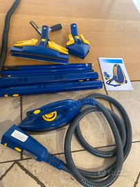 Macchina per pulizie a fondo,con vapore a tre intensità,completa degli accessori in foto,spazzole (alcune usate),spazzolone per il pavimento,prolunghe,tergivetro e relative prolunghe,ferro da stiro,tutto in ottime ,con libretto istruzioni.Alcuni componenti mancano per usura,ma sono facilmente reperibili da un rappresentante Birba.
