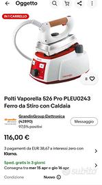 Vendo Vaporella Polti mod 526 pro utilizzata 4 volte. Vendo per errato acquisto. Tutto funzionante, nessun segno di usura, nessuna traccia di calcare. Prodotto come nuovo.