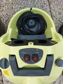 Usato solo poche volte ,manca la scatola originale Sistema integrato di pulizia: pulitore a vapore e aspirapolvere con filtro ad acqua. Pulitore a vapore con caldaia ad alta pressione fino 6 a BAR, vapore regolabile per pulizie profonde di tutti i pavimenti e superfici lavabili di casa.Aspirapolvere con filtro ad acqua, aspira sporco secco e liquido. Particolarmente consigliato ai soggetti allergici, il filtro ad acqua intrappola le particelle più sottili, pollini ed allergeni.Regolazione aspirazione e vapore automatica con 10 programmi disponibili, per aspirare e lavare le superfici con un solo prodotto. 15 accessori in dotazione.