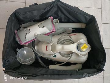 Vaporetto Polti 950, in ottime condizioni, pulito da calcare,completo di accessori e pezze per la pulizia dei pavimenti, dei vetri, divani,materassi e sanitari, con borsone originale
