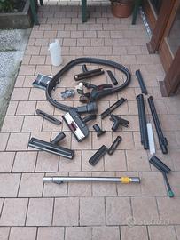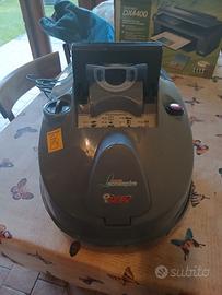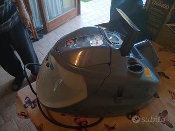 Questo dispositivo è unPolti Vaporetto Lecoaspira, un elettrodomestico multifunzione per la pulizia della casa, UTILIZZATO SOLTANTO UNA VOLTA, completo di accessori e libretto delle istruzioni. Combina la pulizia a vapore con l'aspirazione di solidi e liquidi. Utilizza un filtro ad acqua "Ecoactive Filter" che elimina la necessità di sacchetti di carta. Include un filtro HEPA per purificare l'aria trattenendo acari e pollini. La caldaia raggiunge una pressione di 5 bar per una pulizia profonda.