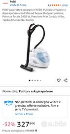 vendo vaperetto modello lecoaspira fv 30 marca polti. come da foto è perfetto ed è stato usato pochissimo. prezzo di vendita attuale come da foto 327 euro. vendo a euro 150