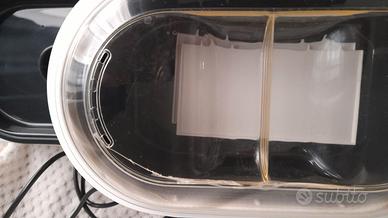 Unico difetto il coperchio superiore è lesionato in un angolo(come da foto) ma non è rotto e quindi il vapore non esce.