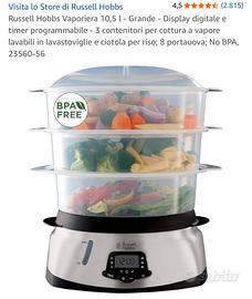 Vendo vaporiera Russell Hobbs Maxicook, in ottime condizioni 10,5l capienza sebatoio 1,3l. È perfetta per cucinare al vapore in modo sano e semplice.