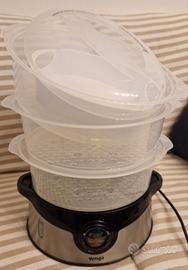Funzionante, usata pochissimo e con tre scompartimenti più un contenitore per riso. No libretto di istruzioni e scatola. Praticamente nuova.