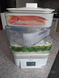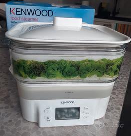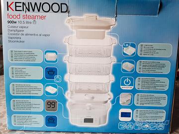 Vaporiera Kenwood Colore: bianco Capacità: 10,5 litri Potenza 900 W Timer con spegnimento automatico a fine cottura e segnale sonoro 6 programmi di cottura preimpostati e funzione mantenimento in caldo Display digitale 1 cestello per riso - 3 cestelli impilabili Misure: larghezza: 31 cm - profondità: 23 cm - altezza: 38 cm Nella confezione originale - MAI USATA