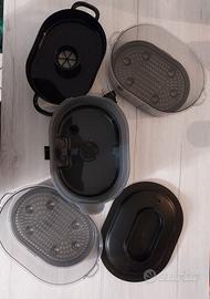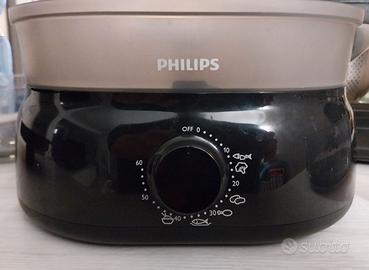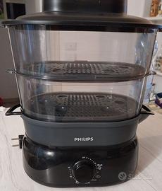 Vendo causa inutilizzo vaporiera marca PHILIPS modello HD9116 con timer, per cotture a vapore di carne, pesce, verdure e riso con due ripiani e infusore di aromi. I due cestelli a disposizione sono impilabili come si può vedere in foto. È dotata di coperchio anti gocciolamento