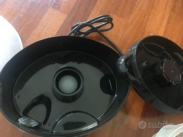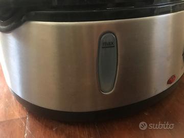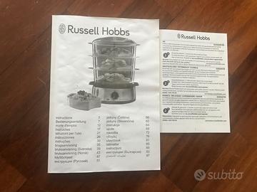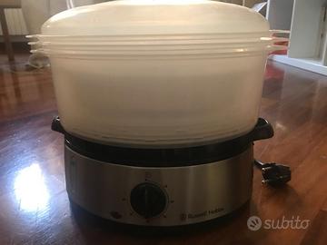 Vendo vaporiera Russell Hobbs 19270-56 – 800W, 9 litri Colore: acciaio e nero Composta da 3 vasche impilabili di diverse dimensioni + 1 vaschetta per la cottura del riso. Comprata nuova a fine 2019, usata solo 4-5 volte (solo una volta con tutte e tre le vaschette) perché poi ho ricevuto un robot da cucina con funzione vapore. È quindi ancora in ottime condizioni, sempre pulita con cura dopo ogni utilizzo. Funziona perfettamente: ha un timer che interrompe automaticamente la cottura ed è molto facile da pulire. Non ho più la scatola originale, ma sono inclusi libretto di istruzioni e garanzia (il libretto ha solo la copertina leggermente bagnata, come visibile in foto). Consegna a mano disponibile in alcune zone di Milano, previo accordo.