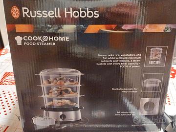 Russell Hobbs 19270-56. Numero di cestini: 3 cestello/i, Colore del prodotto: Nero, Acciaio inossidabile, Posizionamento dell'apparecchio: Libera installazione. Tipo di timer: Meccanico. Potenza: 800 W Modo intelligente e salutare per cuocere a vapore gli alimenti, mantenendo allo stesso tempo le sostanze nutritive e le vitamine. La vaporiera è dotata di 3 vaschette per cuocere contemporaneamente cibi differenti, come verdure, riso e pesce. Posizione di controllo: Frontale Materiali: Acciaio inossidabile Volume cestino: 9 L Scodella per riso: 1 L Timer integrato: Sì Tipo di timer: Meccanico Spegnimento di sicurezza automatico: Sì Facile da pulire: Sì Indicatore del livello dell'acqua: Sì Spia: Sì