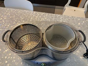 Vaporiera Tefal Vitacusine. Cuoce a vapore verdure, carne. pesce e riso. Con due cestelli contenitori, vassoio per carne o pesce e contenitore per riso. può cuocere contemporaneamente diversi cibi senza mescolare i sapori. Timer, funzione Vitamin+ e Keep Warm. No scatola originale.