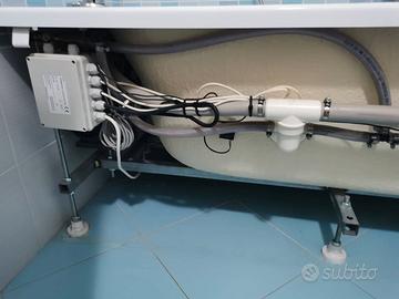 Vendo vasca idromassaggio Hidrospace modello REHA 150×70, completa di pannello frontale e tutta la componentistica originale, perfettamente funzionante, smontata per ristrutturazione bagno Normali segni di usura, sempre tenuta pulita, nessuna crepa o ingiallimento, impianto elettrico e pompa testati prima dello smontaggio. Pronta da ritiro e reinstallazione da parte di idraulico / installatore abilitato. Caratteristiche principali: - Guscio in acrilico sanitario antiallergico rinforzato con vetroresina; - Telaio in acciaio zincato con piedini regolabili e struttura robusta; - Sistema idromassaggio Whirlpool con getti acqua/aria laterali; - Pompa silenziata da 810 W con centralina elettronica AES “WHIRLPOOL + CLEAN + PULSE”; - Comando digitale a bordo vasca con LED indicatore, funzioni idro, pulizia circuito “Digital Clean” e regolazione aria manuale. Misure Vasca: 150 × 70 × 60 cm (L × P × H). Peso (indicativo): circa 60 kg Ideale per installazione ad incasso o con pannello frontale in dotazione. ⚠️ IMPORTANTE: Non entra in autoveicolo - serve furgone o carrello per il trasporto. RITIRO ESCLUSIVO a carico dell'acquirente ad Augusta (SR). Disponibile per video/demo funzionamento o sopralluogo. NOTE: Questo è un annuncio da PRIVATO, l'oggetto dell'inserzione è di tipo PERSONALE e la formula di vendita è VISTO E' PIACIUTO. Non sarà fornita alcuna prova d'acquisto a valore di garanzia ne assistenza post-vendita.