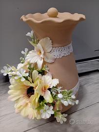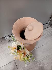 vaso di coccio decorato a mano con fiori compreso coperchio pezzo unico