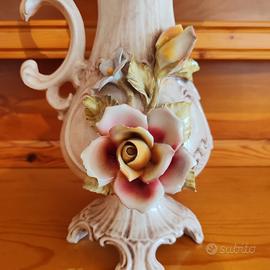 vaso con fiore in ceramica applicato, penso venga da una ceramica della Vecchia Bassano guardando la scritta sotto.