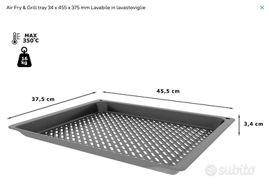 VASSOIO AIR FRY & GRILL TRAY FORNO SIEMENS HZ629070 ADATTO ANCHE PER FORNO A MICROONDE 34 X 455 X 375 MM NUOVO ANCORA CON IMBALLO ORIGINALE