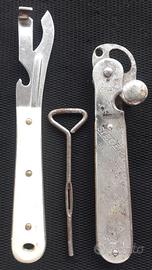 Apri scatole apribottiglie cavatappi Sieger Eminent Barilla pathos complet cucina vintage utensili lavoro cuoco chiave scatole latta vintage
