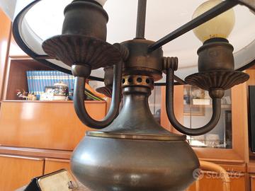 vecchia lampada elettrica in ottone a tre luci com boccia in vetro bianco in ottime condizioni e funzionante Prezzo non trattabile Non spedisco