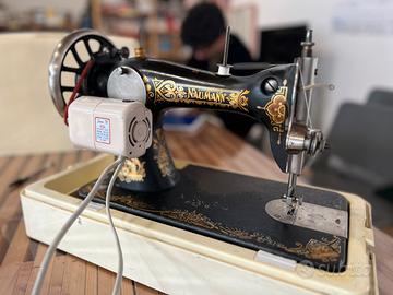 Vecchia macchina da cucire Naumann con pedale elettrico e motorino adattato. Funzionante. E comoda sportina.
