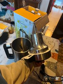 Macchinetta elettrica per fare latte vegetale, togu, yogurt, frullati e zuppe. Manca il suo colino perche si é rotto, ma é un colino come un altro, non serve per far funzionare la macchina, da nuovo veniva più di 200. Lo vendiamo per passaggio a un nuovo modello. Il prezzo è trattabile, stiamo svuotando casa