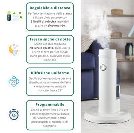 Ventilatore 3 in 1 che rinfresca e umidifica fino a 10 metri di distanza! Perfetto per ambienti ampi, può essere utilizzato come piantana, ma all'occorrenza di trasforma in ventilatore da tavolo.