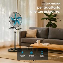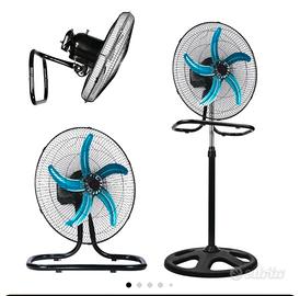 ventilatore da 50 Watt diametro da 50 cm con la possibilità di essere usato in 3 modi differenti. a muro a terra oppure su asta, dotato di un supporto molto stabile e robusto x altre info contattatemi luca 3385863487