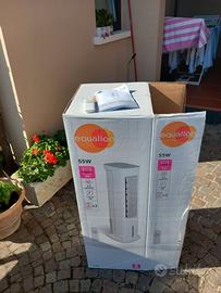 Vendo per inutilizzo, in quanto abbiamo optato per un condizionatore, ventilatore verticale a pavimento preso lo scorso anno e usato pochissimo. Oltre alla ventilazione è dotato di diffusione di microparticelle di acqua fresca che raffreddano l'aria in uscita. Fornito con due blister, nella vaschetta posizionata nel retro, si può mettere acqua fresca oppure con essa anche dei cubetti di ghiaccio. Tre velocità di uscita con possibilità di orientarla automaticamente o fissa. Veramente pari al nuovo e fornito di istruzioni, telecomando e sua confezione originale.