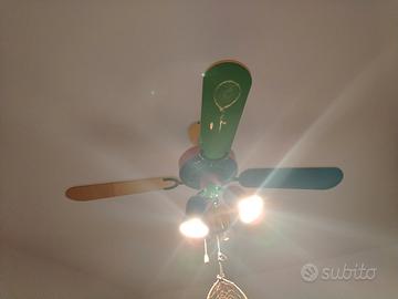 Vendesi ventilatore da soffitto per cameretta bimbi, perfettamente funzionante grazie a telecomando con 3 velocità. Già smontato, non spedisco.