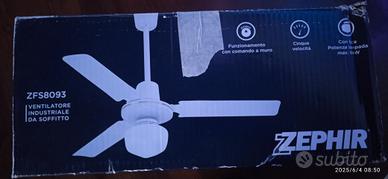 ventilatore a soffitto a pale da 92 cm. marca ZEPHIR con comandi a muro. con lampada max 60 w . colore bianco. NUOVO ancora nell imballo originale.