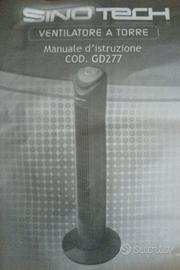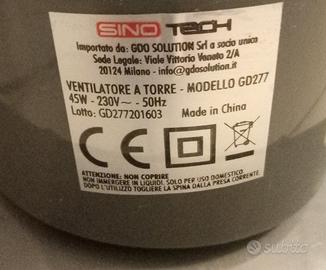 Ventilatore a torre Sinotech DG277, funzionante solo alla massima potenza (Livello 3), sia fisso che in rotazione.