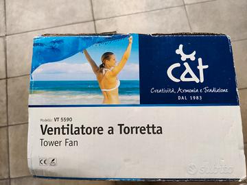 Ventilatore a torretta cat modello VT 5590. Funzioni timer, oscillazioni a 70 gradi, ioni aria per sanificazione, 3 velocità. Dotato di telecomando. Vendo causa passaggio a condizionatore.