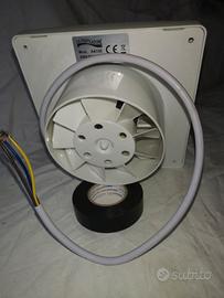 Ventilatore aspiratore aereatore da parete per tubo d. 12 cm marca La Ventilazione modello AA12E temperatura max 40°C 230V 50Hz 15W portata 138 mc/h. Articolo mai utilizzato, residuo di magazzino da cessata attività di vendita.